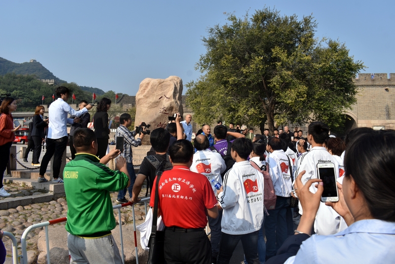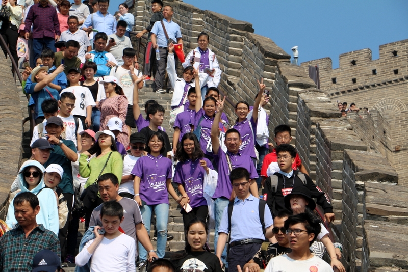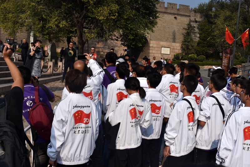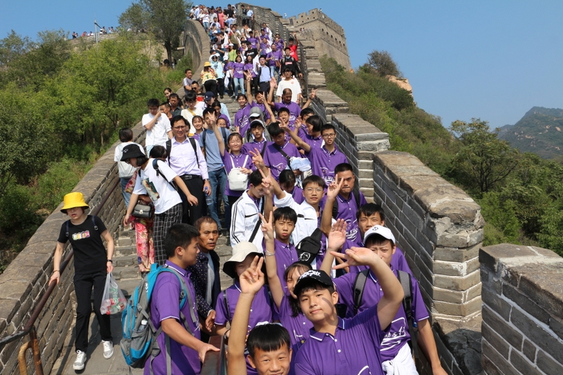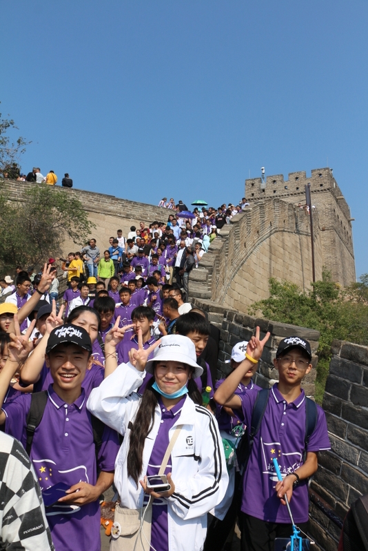 williamhill威廉希尔亚洲官网年年会组织一两百高一年级学生利用国庆来北京励志,这次来京励志的高一学霸有159人,与刘Sir合影的是先行来到现场的约一半人。他们原本计划乘坐7点48分去八达岭的动车,因为从媒体上知道刘SIR要去长城,改成了第一趟6点50分出发的动车,没想到他们果然如愿以偿。