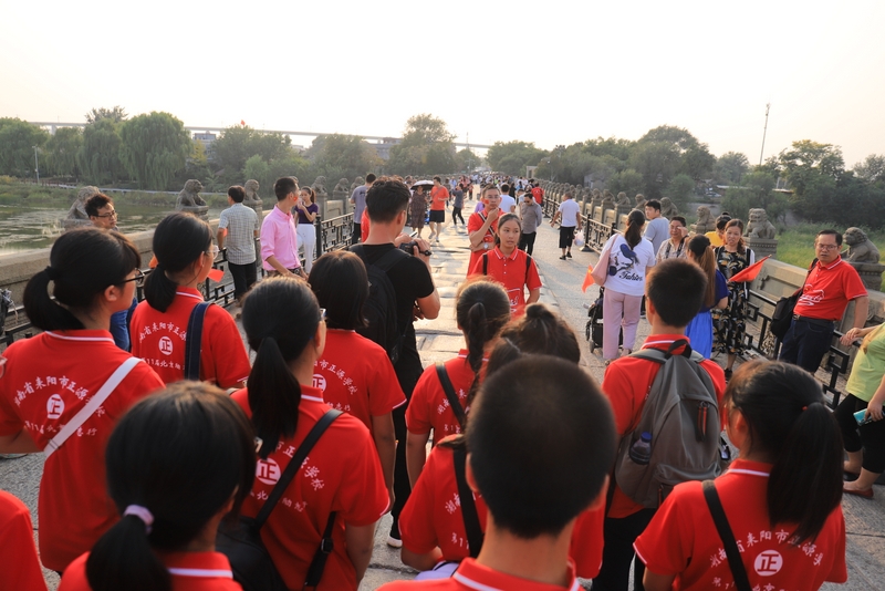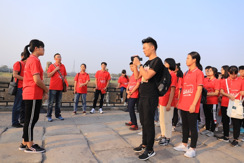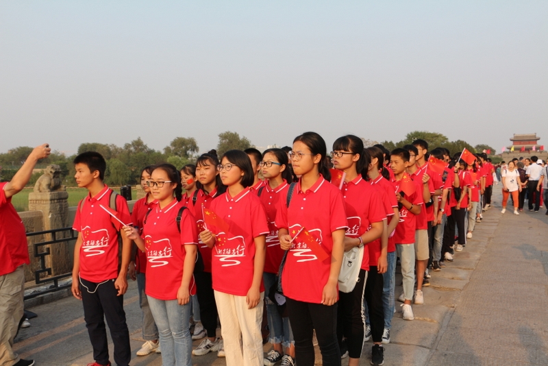 在卢沟桥上,191班曾慧和192班资佳麒二位小导游分别介绍了卢沟桥的特色与历史,让同学们真的“涨姿势”。同学们高喊口号:勿忘国耻,勤学报国,兴我正源,爱我中华!铿锵有力,掷地有声!同学们高唱爱国歌曲,吸引众多游客观看、拍照。