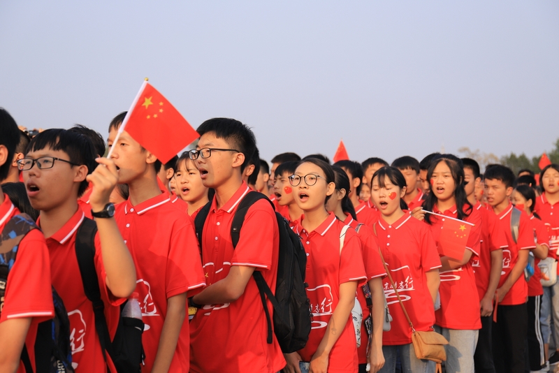 同学们高呼口号:勿忘国耻,勤学报国,兴我正源,爱我中华!