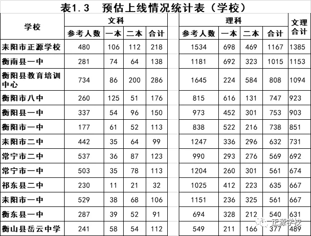 参加本次模拟考试的有衡阳市62所高中学校的51305名高三学生,其中文科 18622 人,理科 32683 人。预估理科一本分数线446分,二本385分;文科一本495分,二本461分。