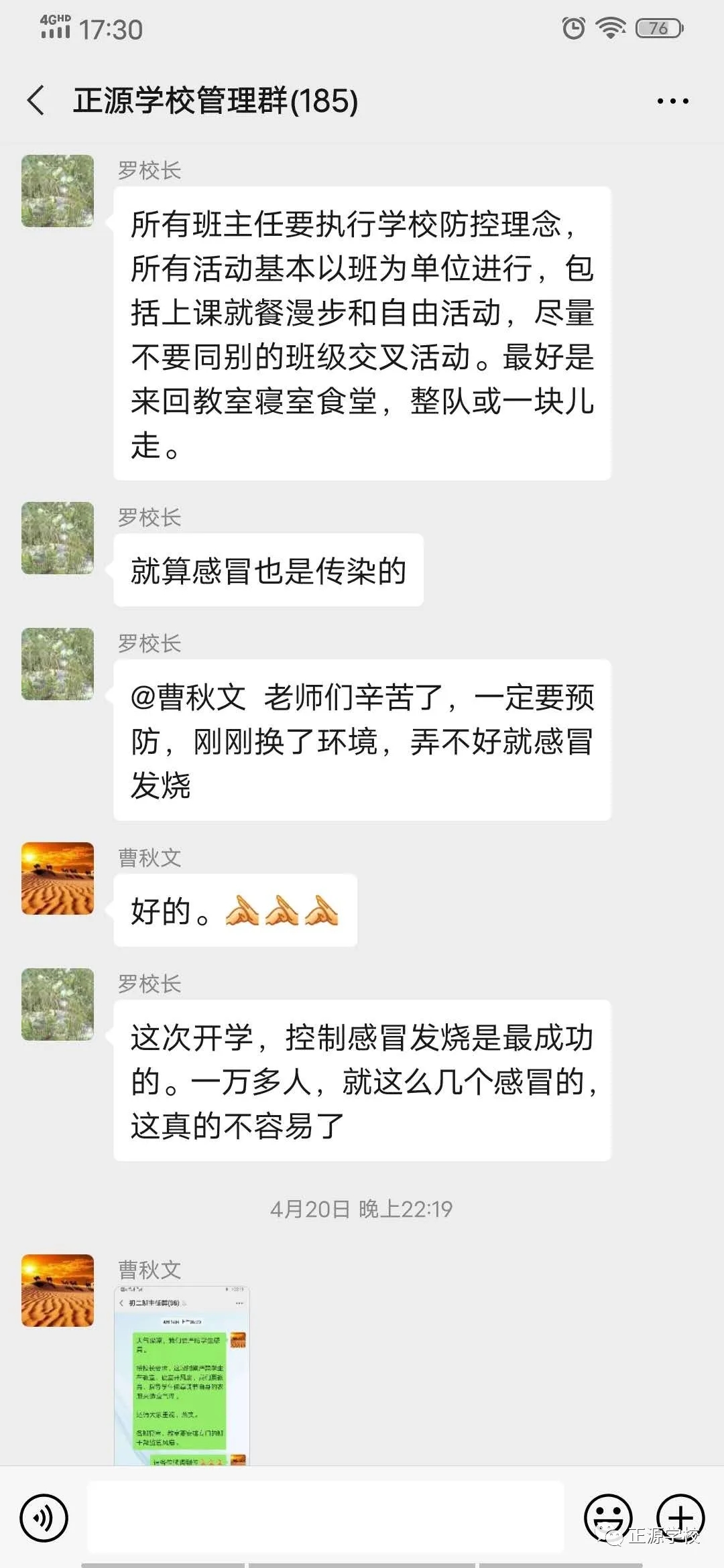 首先,也是重中之重,要做好防疫工作。我们的初中高中学生,进校已经一个月左右,没有发现任何人感染。我们要利用正源全封闭式管理的难得的隔离机会,尽可能不与外面人接触,特别要防止接触无症状感染者,这是一个很艰巨的任务,必须人人重视方可见效。