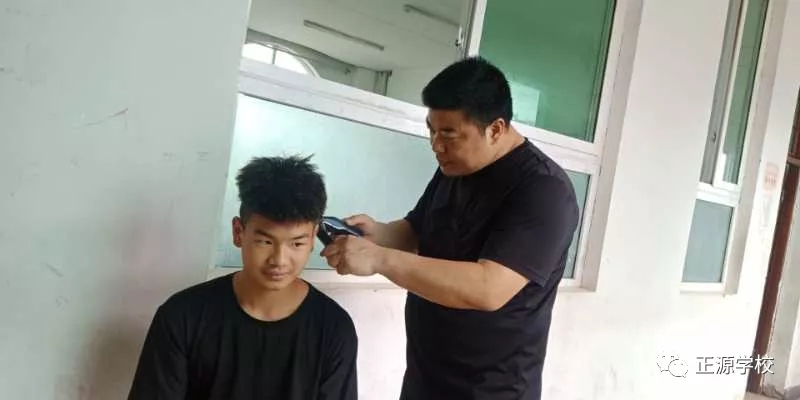 在正源校园里,这样的“便民服务站”多处可见,有年级把理发的场所设在老师办公室,同学需要理发,利用课余或者自习时间,走进办公室就可以解决。有年级把理发场所设立走廊上、教室门口等,理发师有学生也有老师,怎么方便怎么剪,没有限制,没有要求。罗校长在学校管理群里指示,为解决学生理发的问题,准备请一个理发师在学校授艺,购买来理发工具,给同学们学艺。现学校已向人社局申请美发师来校传授技艺。