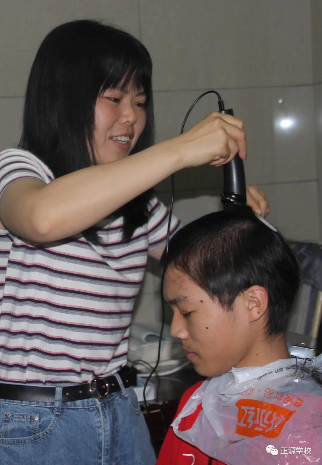高一年级彭阳老师为学生义务理发