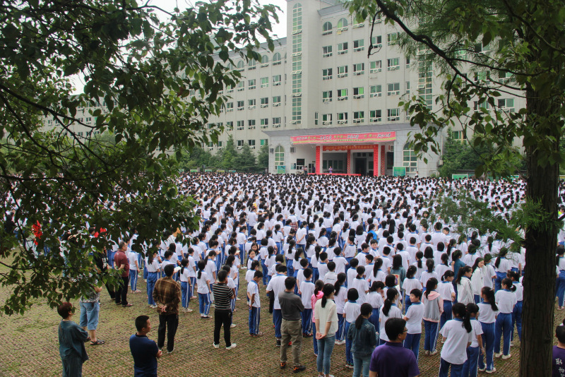 6月1日早八点,初中部全体学生身着校服齐聚学校广场,举行庄重严肃的升旗仪式。