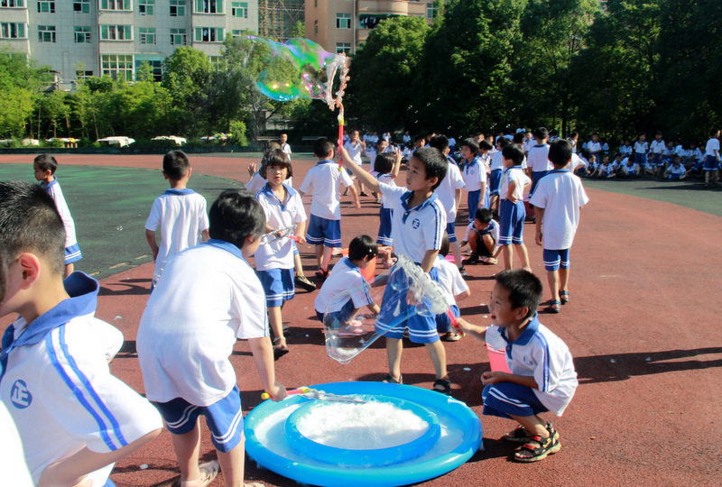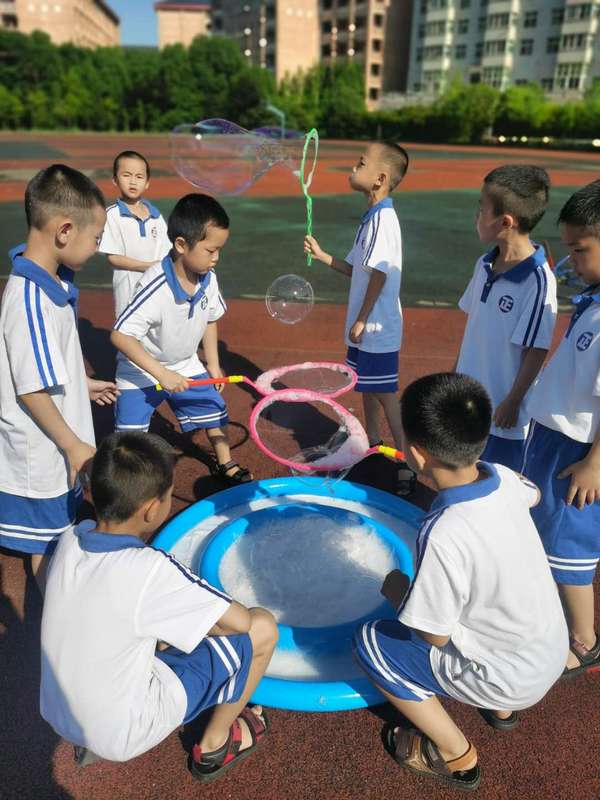 灿烂的阳光,甜美的笑容,给校园增添了无限生机。飘飞的泡泡给我们以遐想。6月12日,小学部一年级全体学生,在运动场举行了玩泡泡户外活动。