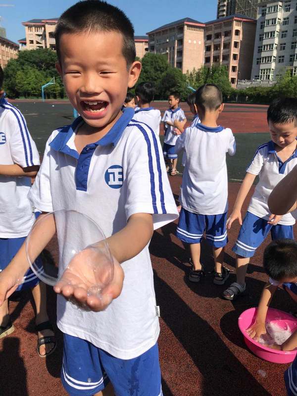 “哇,好美的泡泡!” “哇,你看泡泡上天啦!”“……”此次玩泡泡活动,在同学们的欢呼与赞叹声中,拉开了帷幕。