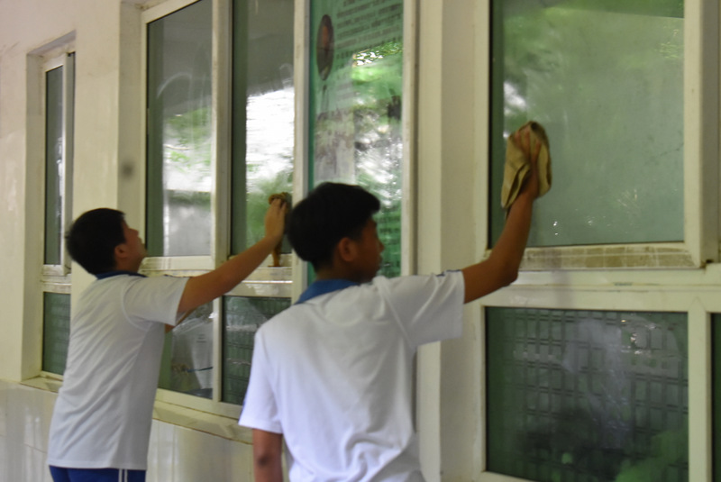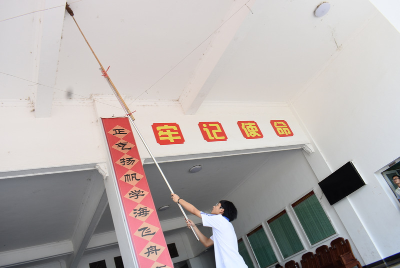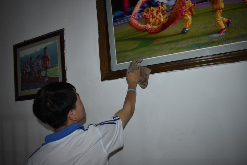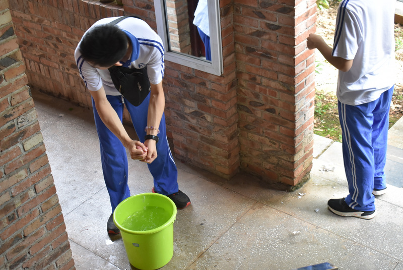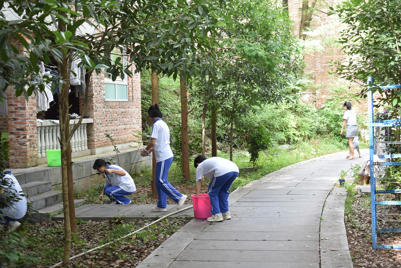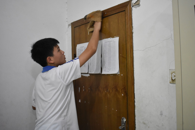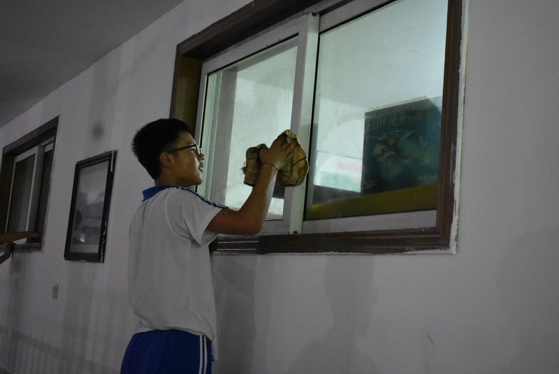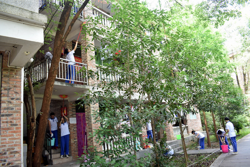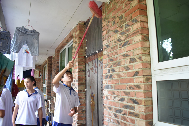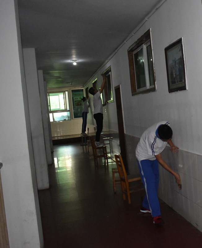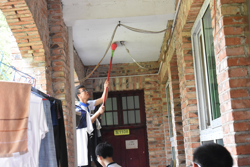 启动仪式结束后,志愿者们在老师的带领下,走进教师别墅区及学校教学区,清理卫生死角、清除残垢污渍、清扫天花板蜘蛛网等。活动从早上8点持续到10点。