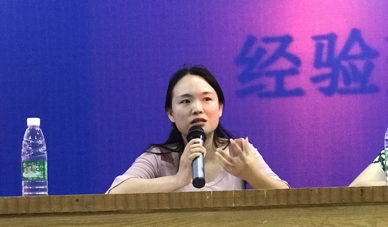 接下来与大家分享的是易明香老师。易老师是一位知性优雅的年轻女老师,虽从教才七年,但教学方式却能独成一家。她语言指令性强,幽默诙谐,课堂气氛活跃,深受学生喜爱。易老师先从备课谈起,强调好的课堂离不开课前的精心准备。然后就各种课型的讲授谈了自己的独到经验体会。最后,鼓励刚毕业的年轻老师多参与公开课活动,以便更好地磨练提升自我。