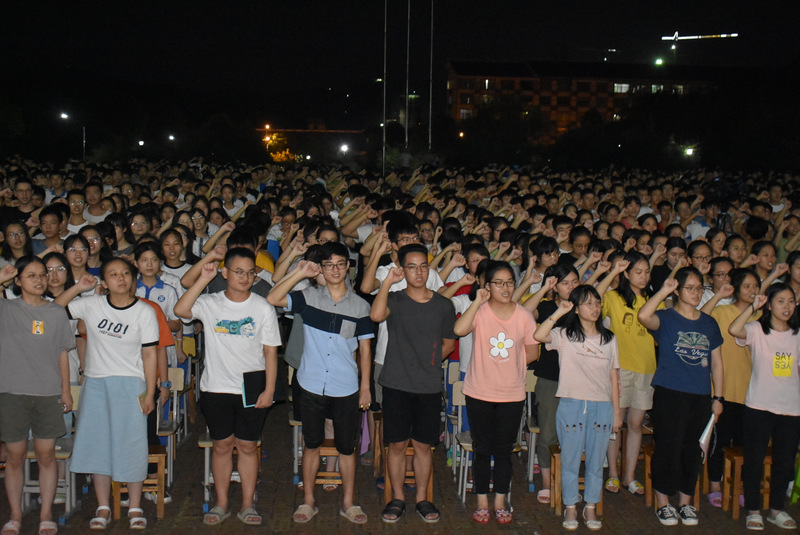 受罗校长讲话鼓舞,同学们情绪高涨。在领誓同学带领下,全体考生举起右手集体宣誓:“自觉遵守考试纪律,自觉维护考场秩序和疫情防控相关要求,坚决服从考试工作人员管理,绝不违纪违规,信守报考承诺,诚信参加考试,沉着冷静考出佳绩!”