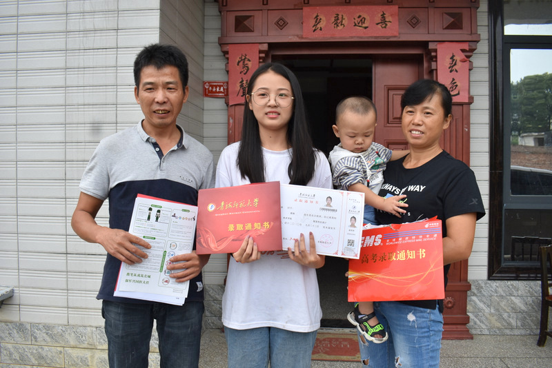 连日来,各大高校录取通知书逐渐落入主人之手,喜讯一个接连一个传到学校。9月7日,家住水东江街道泗门洲镇石下村1组的赵明欢同学拿到了自己的通知书,以文化395分,专业240分的成绩,被青海师范大学美术学院视觉传达设计专业录取。