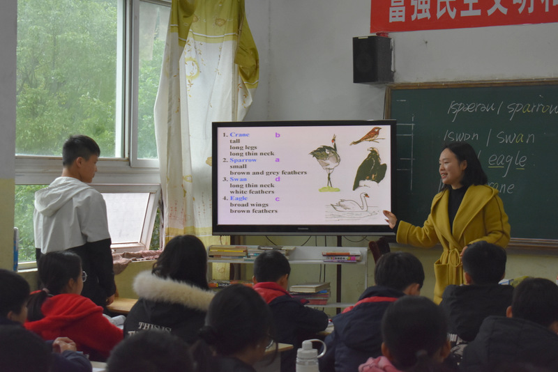 391班易明香老师的英语课堂,台上老师笑靥如花、声情并茂,台下学生欢快活跃、应答如流。初二的师生居然能在课堂上做到全程英语交流,农家子弟为主的留守儿童居然能将英语口语说得如此流利而又顺畅,令人惊叹不已。