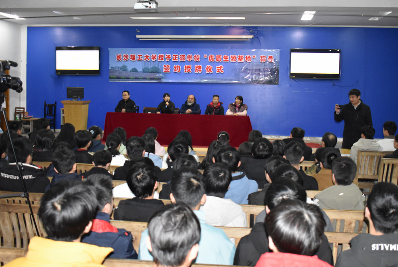 长沙理工大学刘坚书记在签约仪式上致辞: “在长沙就了解到williamhill威廉希尔亚洲官网是耒阳第一名校,在整个湖南都非常有名。看到你们的高考录取榜情况,正源考生非常棒。跟罗校长的谈话中,切切实实地感受到他的教育情怀,非常庆幸同学们有这么好的一位校长在给你们做大学前期的培养、把关,也很庆幸选择了正源作为我们在耒阳唯一的合作基地。我们将与正源合作,开展一系列的讲座和活动,让长沙理工大学的老师给正源的中学生带来专业选择、志愿填报等方面的指导,在招生政策允许的条件下,重点考察和优先录取正源的考生。正源中学作为优质生源基地有权直接向长沙理工大学推荐有学科特长、创新潜质和综合素质优秀的毕业生。希望通过williamhill威廉希尔亚洲官网“优质生源基地”这个平台加强中学和大学之间的融合,促进人才培养和选拔。”