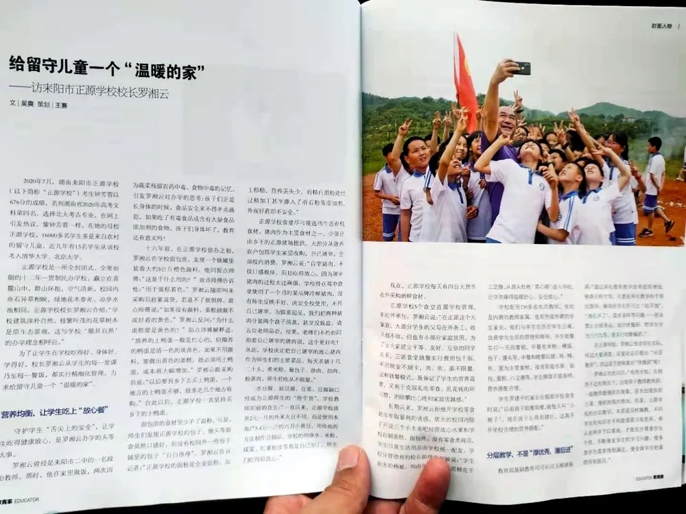罗校长对农村孩子的天然感情,对留守儿童的独特见解,感动了前来采访的各路记者,他们从不同角度对“正源现象”进行了全方位报道。《教育家》杂志更是从钟芳蓉现象背后,找到了留守儿童在正源超常规成长的秘诀,前来正源探秘的采访部主任吴爽,决定以williamhill威廉希尔亚洲官网给留守儿童一个温暖的家为主题,写作并刊登了《给留守儿童一个 “温暖的家”——访耒阳市williamhill威廉希尔亚洲官网校长罗湘云》。