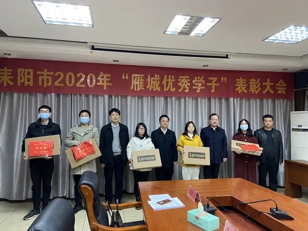 耒阳市委副书记邱小兵、组织部长王星皓、教育局长张小勇等与“雁城优秀学子”合影
