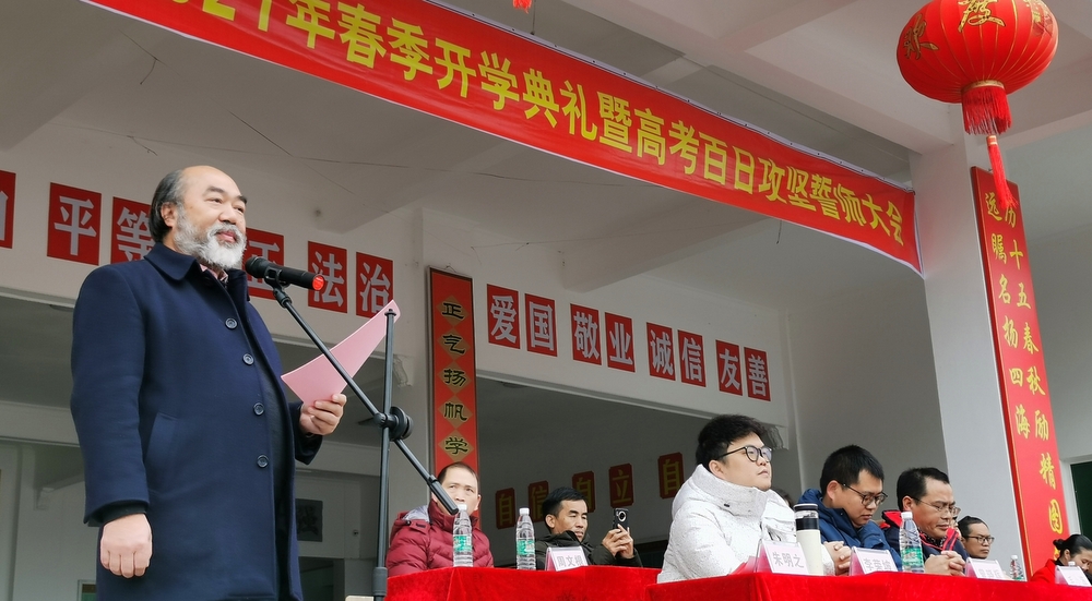 8:30,伴随着典礼主持人办公室主任朱明之的开场致辞,万众期待的2021春季开学典礼暨高考百日攻坚誓师大会正式开启。