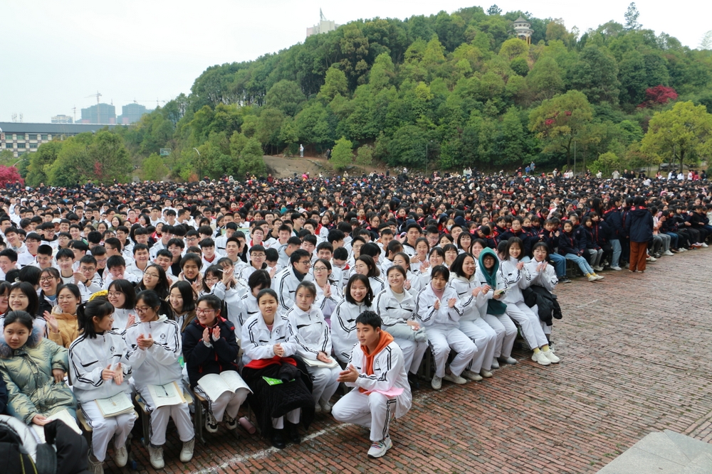在罗校长的讲话鼓励下,在现场万余名同学激情澎湃的热烈掌声中,斗志昂扬的高三百日攻坚誓师大会正式开启。