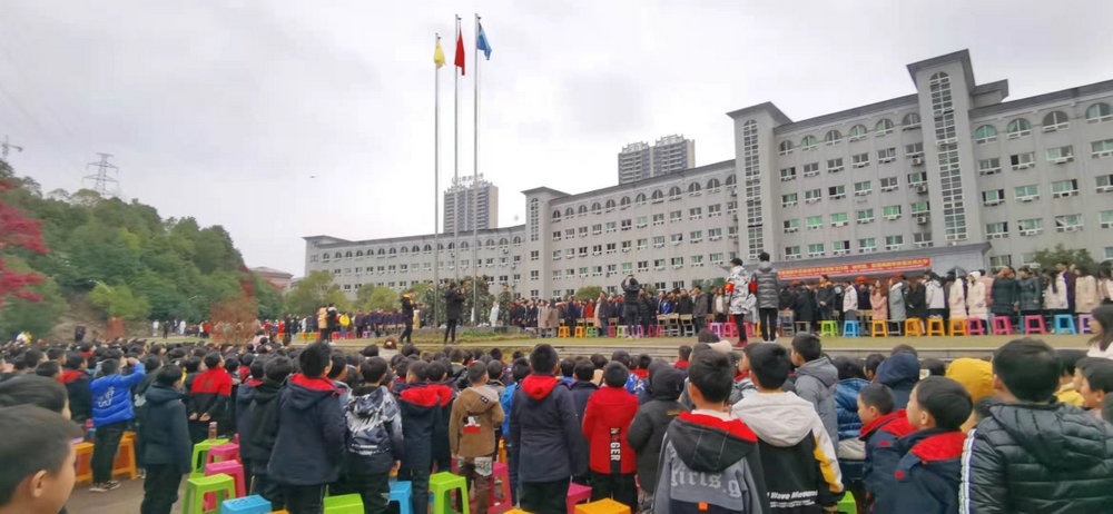在勉励同学们志存高远,树立远大目标,敢于走出国门,勇于问鼎国际,为中华之崛起而奋斗的同时,罗校长再次强调“进校即思进取,怕苦莫来正源”的校训,鼓励同学们“自信创造奇迹,拼搏续写神话”。