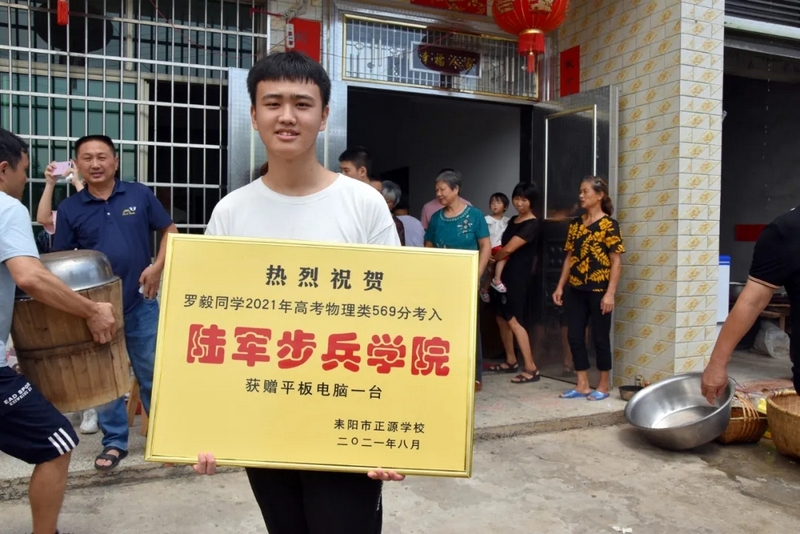 今年的高考,罗毅569分在williamhill威廉希尔亚洲官网物理类排214名。这个成绩一般是享受不到校长亲自率队上门贺喜待遇的。不同的是,罗毅这次考取陆军步兵学院——“将军的摇篮”。罗校长18岁担任团总支书记,20岁开始任教高中政治,一直十分重视学生人格品德塑造。在正源,特别注重通过跑操、军训、远足、北京励志行等活动磨炼学生意志,为正源学生的家国情怀而倍感自豪。在他看来,携笔从戎的孩子不仅要求高考分数高,部队军检的难度可想而知,政审也是毫不含糊。新时代文化青年有志于军营,是正源最可爱的学生,一定要亲自把贺喜的牌匾送到罗毅家门口,要让乡亲们都知道,投军报国的学生,个个都是正源的好学生,胸怀天下的正源孩子,个个都是校长的好孩子。
