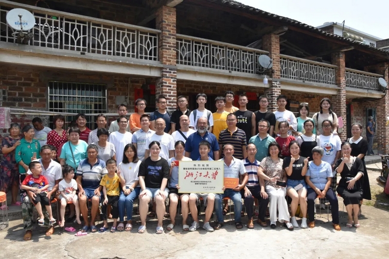 曹咏雄大家庭与老师同学在自家门口合影