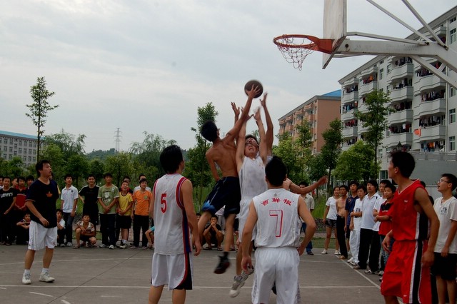 7月1日下午,夏圹镇组队前来我校与校篮球队进行了一场篮球友谊赛。围在四周的师生观众不时为双方的精彩球艺鼓掌。
